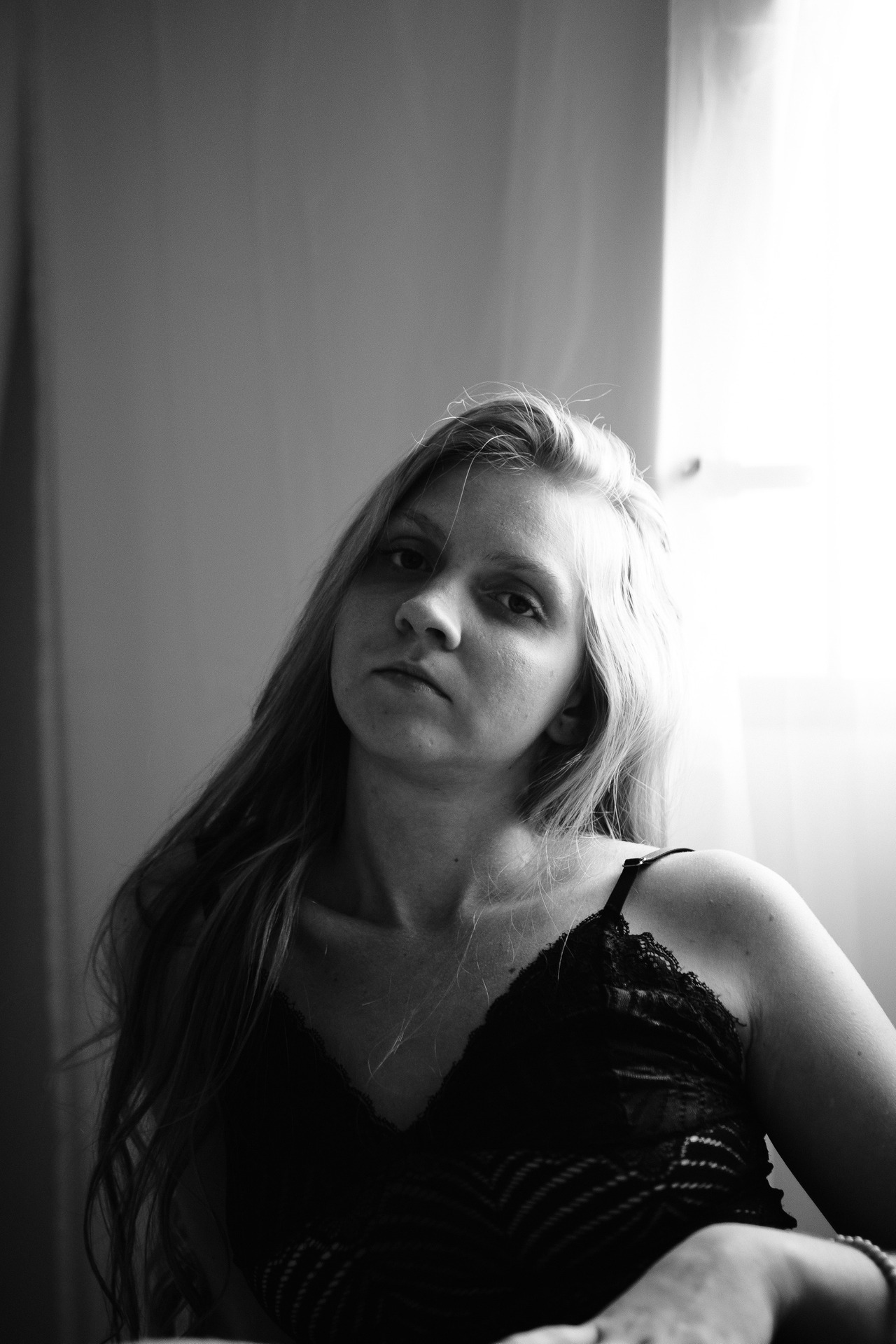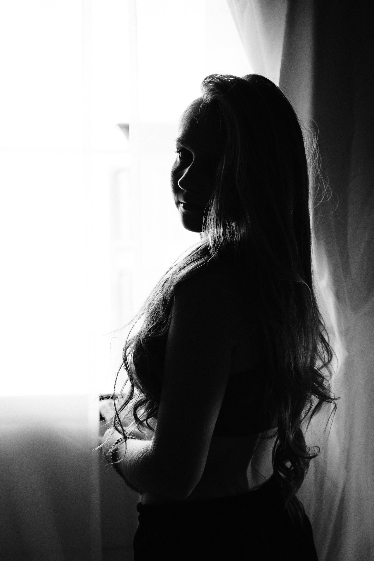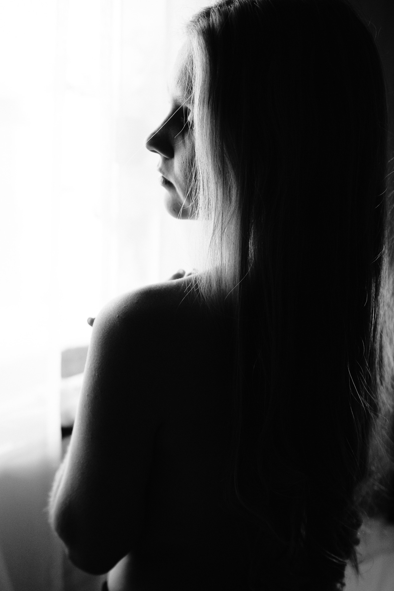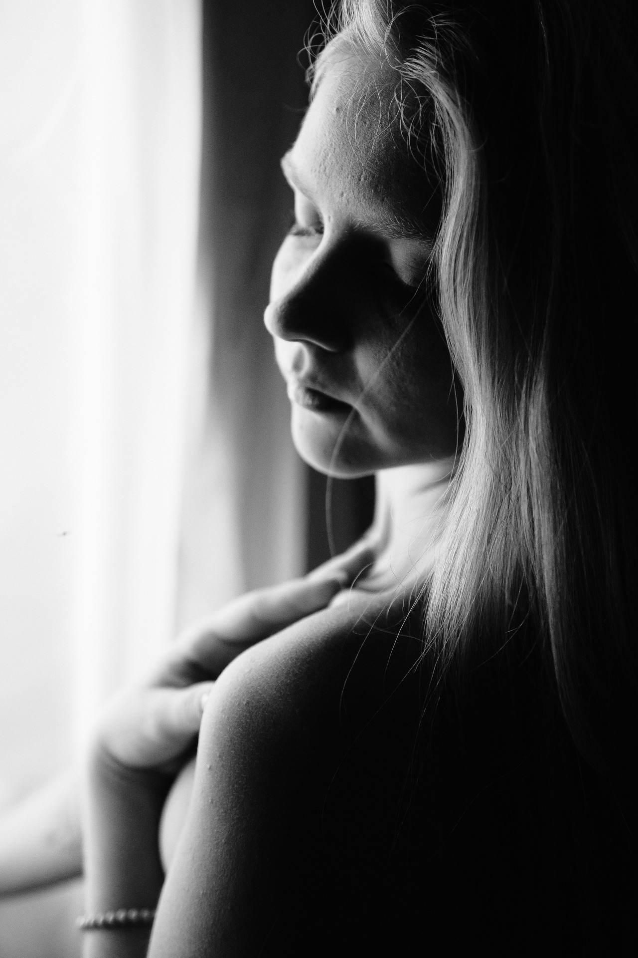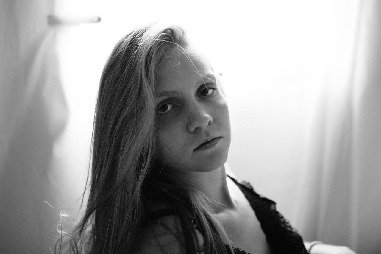 Agora, falando dos detalhes técnicos da foto: posicionei ela de frente pra janela, meio de costas pra mim, com os cabelos cobrindo ao máximo os seios. Queria ir aos poucos, fazendo ela entender o ensaio, entender as poses, perceber que eu não estava ali pra ver como é o corpo dela sem roupa, mas pra quebrar esse dilema sexual que a nossa cultura brasileira coloca em absolutamente tudo.