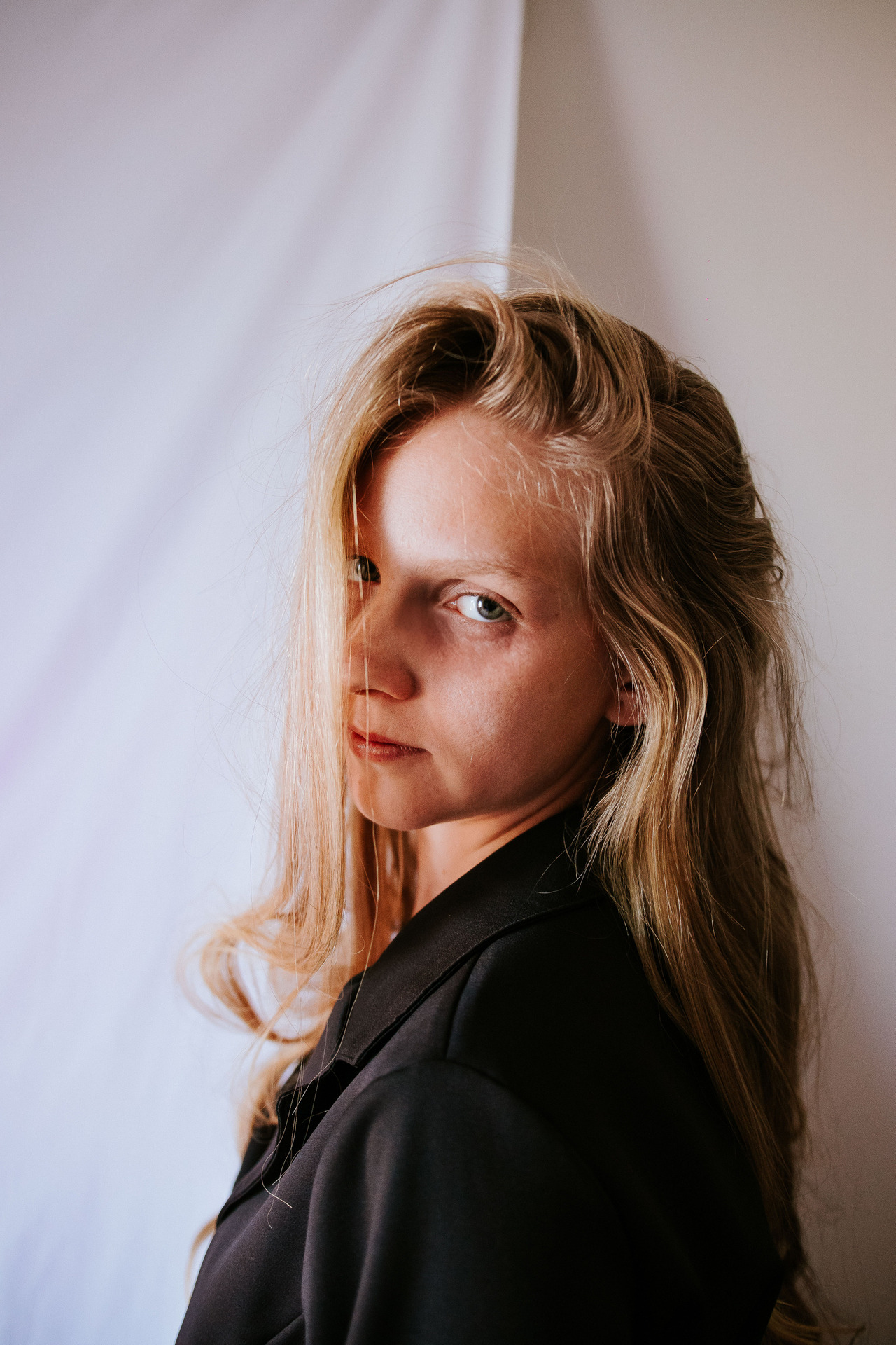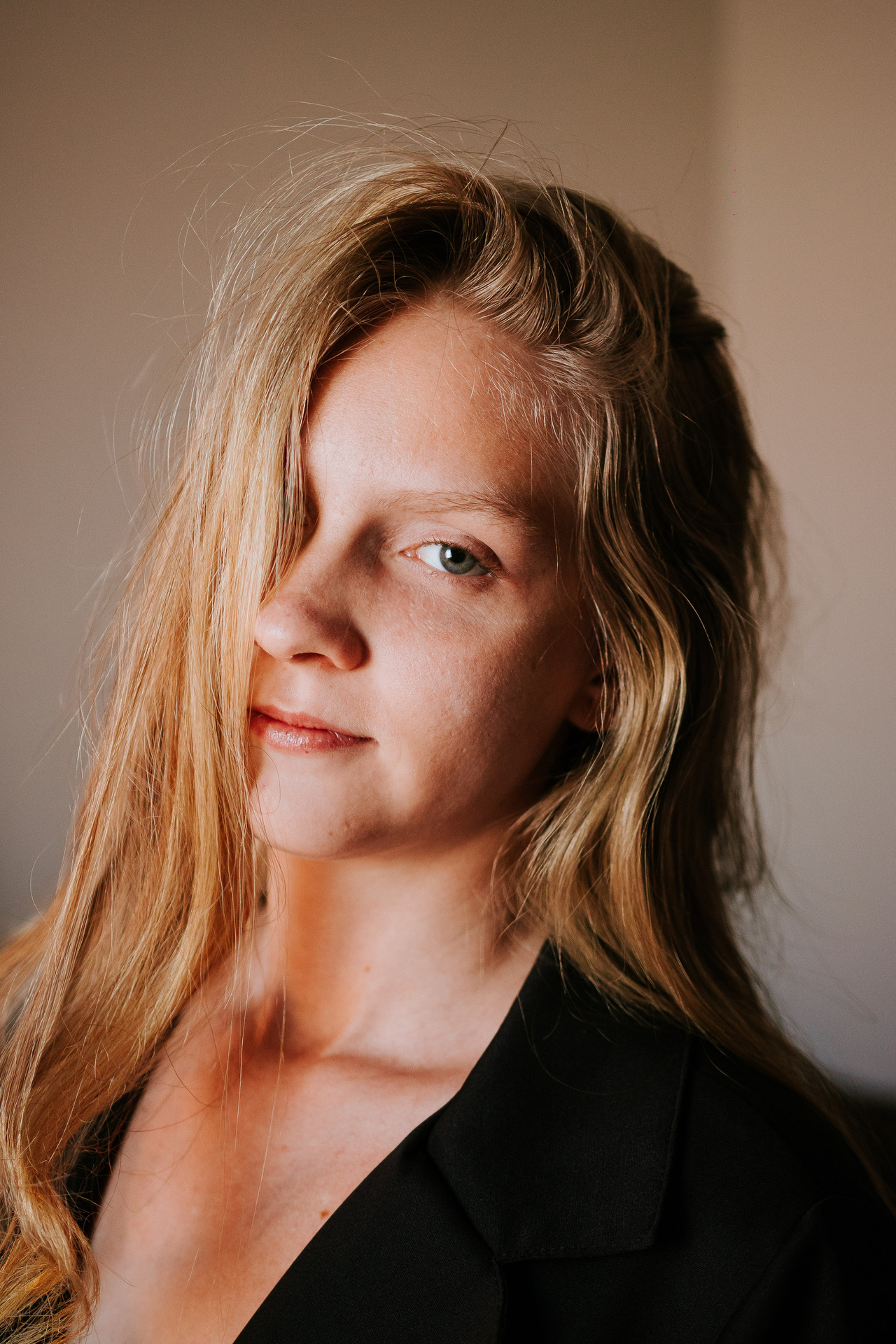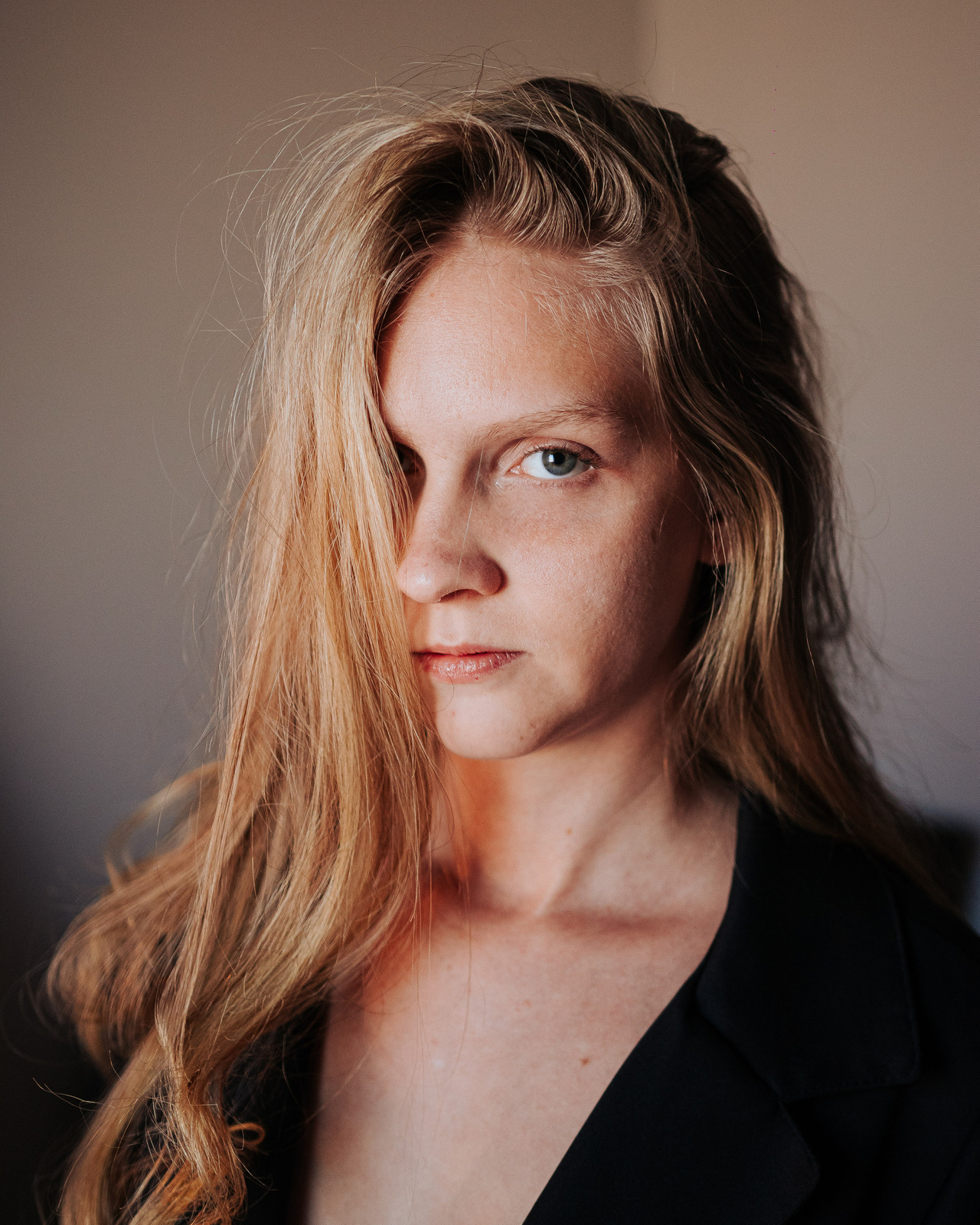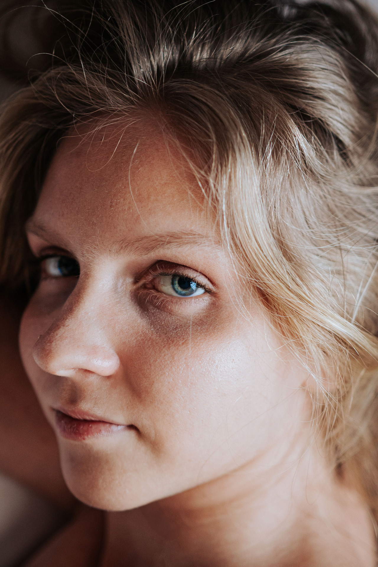 Aqui é o momento do ensaio em que eu valorizo o rosto da modelo ao máximo, 200%. Como já comentei, ela tem uma textura de pele natural incrível, olhos azuis bem clarinhos e um cabelo loiro que fascina qualquer um.