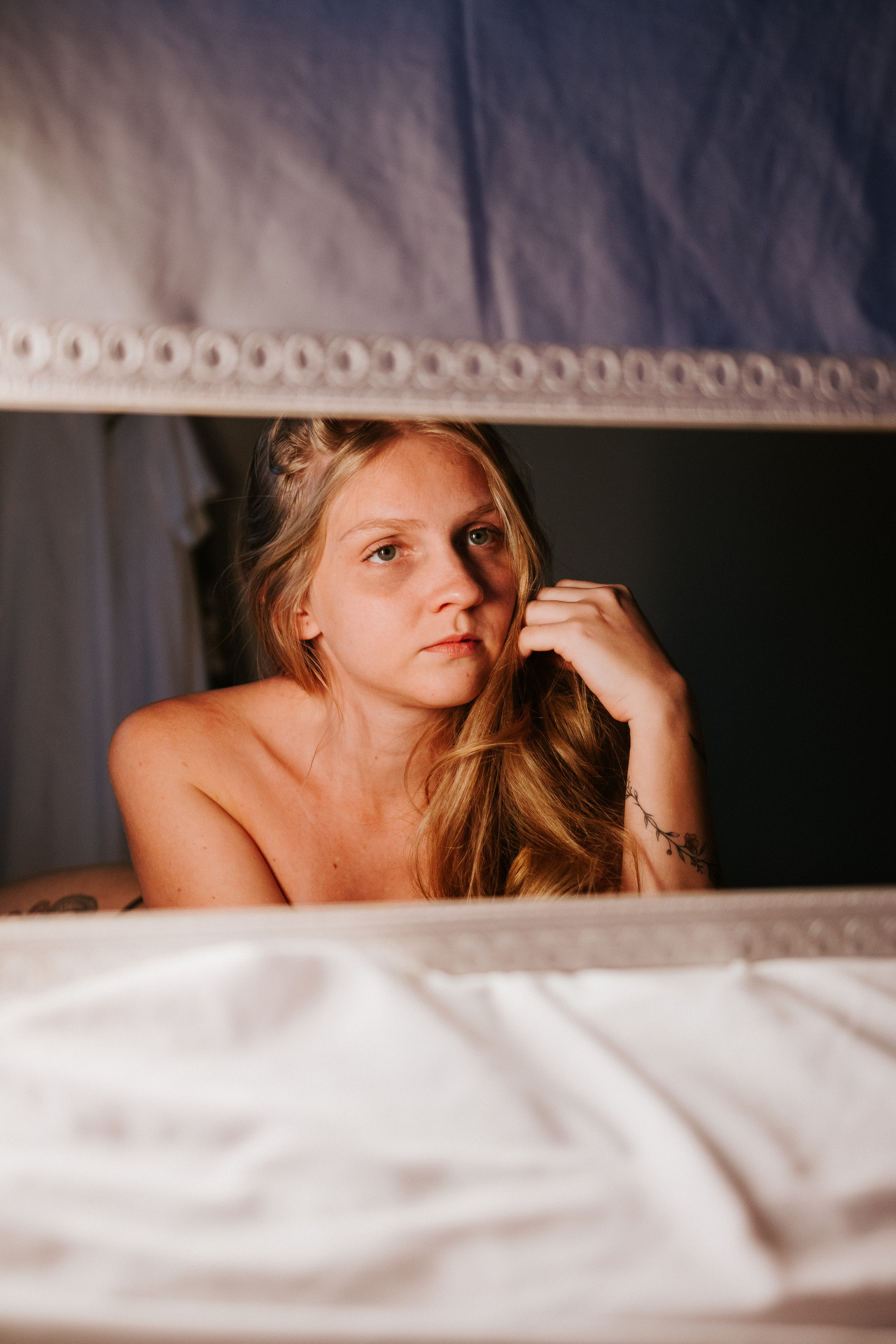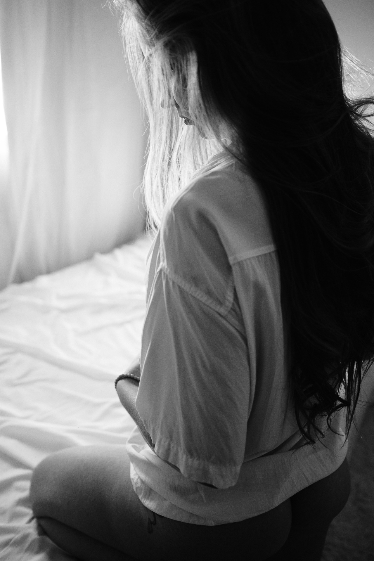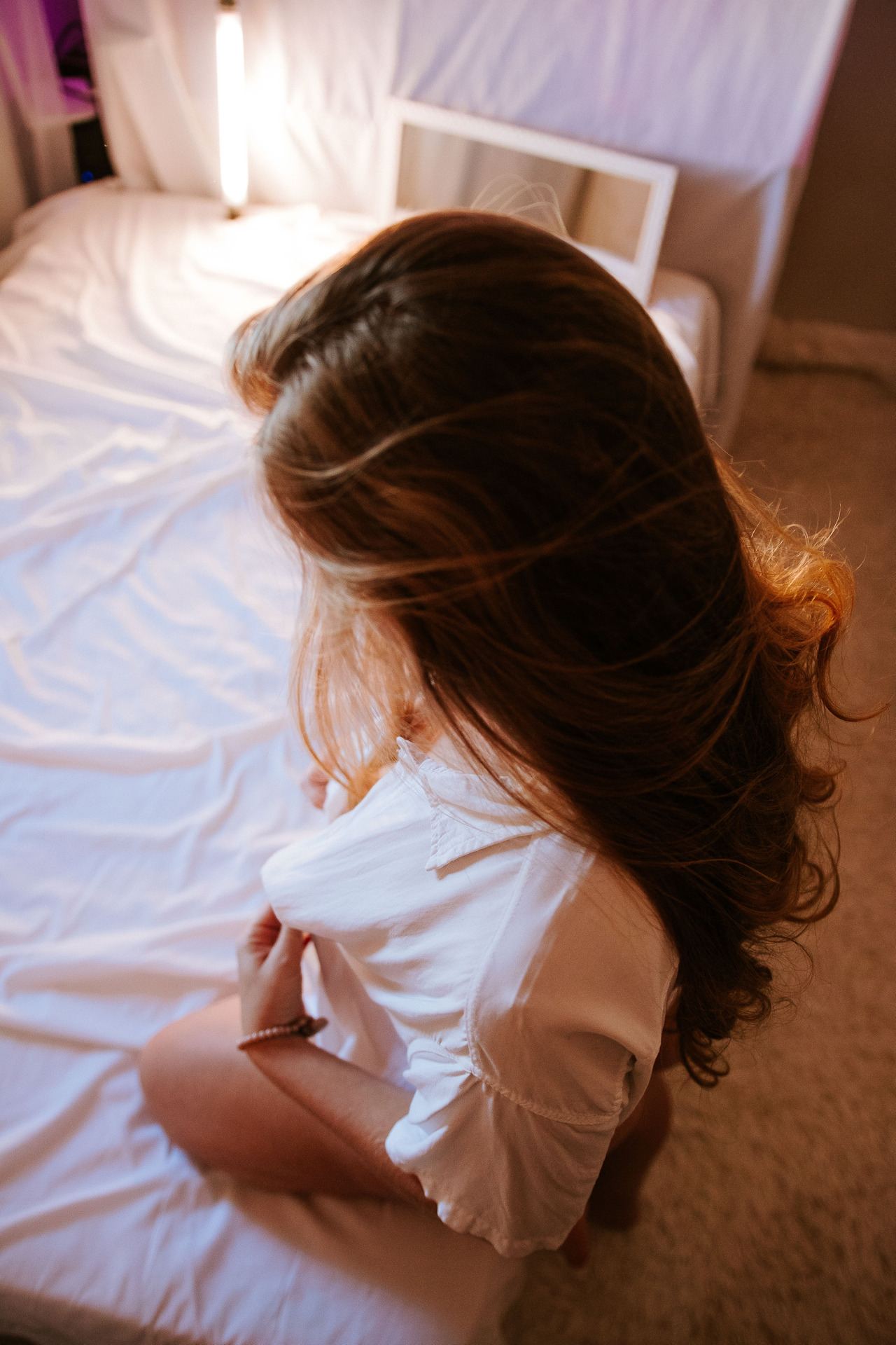 Pensa comigo: o ambiente é super casual, um quarto comum… e ela tá prestes a fazer um ensaio muito íntimo. É natural que qualquer pessoa fique apreensiva, com medo de não ficar bom, ou até com alguma objeção consigo mesma.