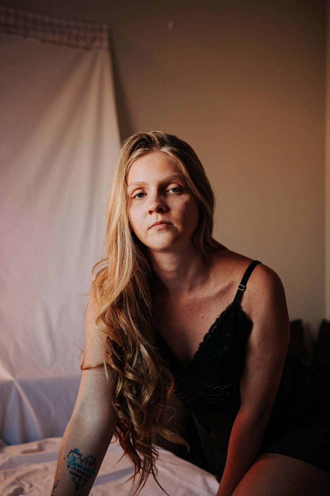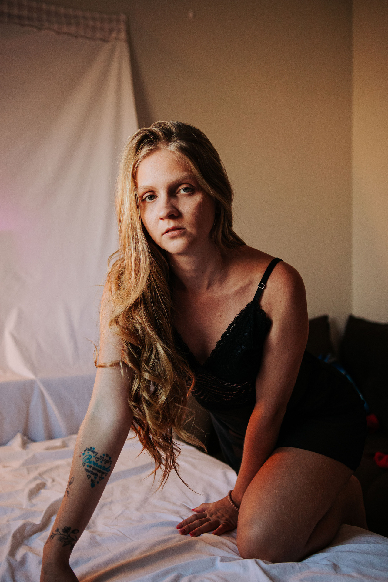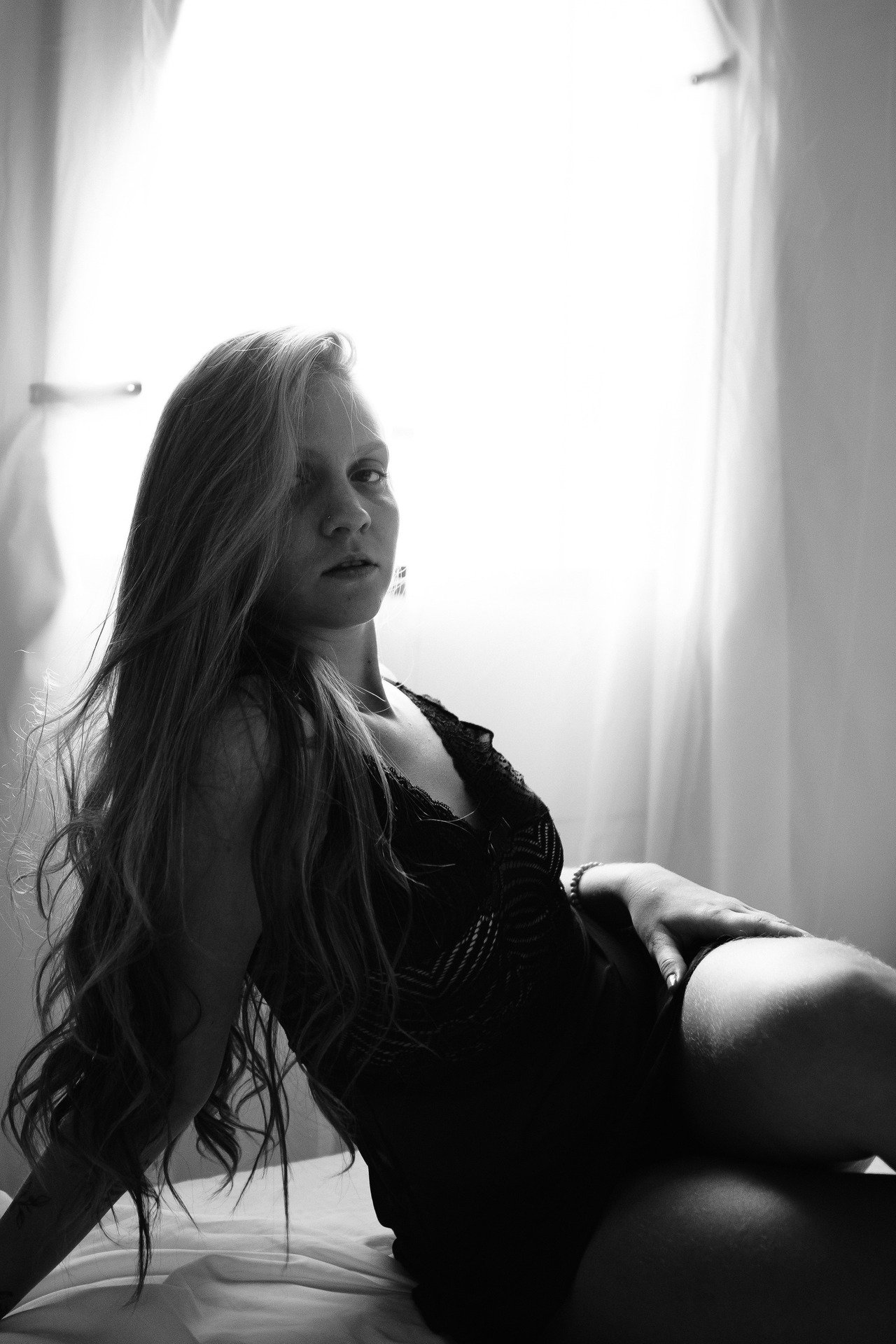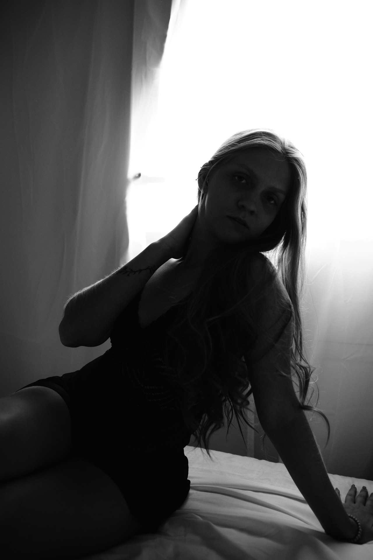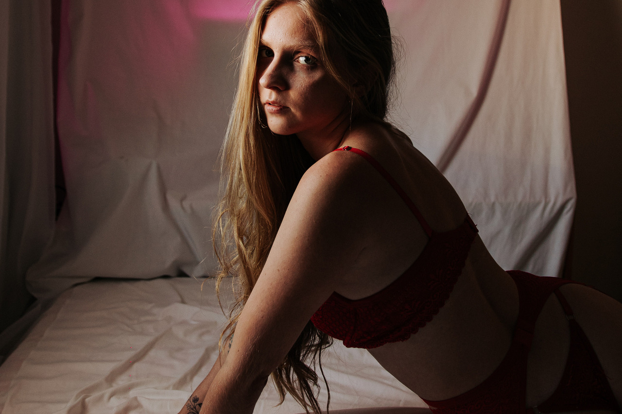 A gente está falando de uma modelo que nunca tinha passado por uma experiência de ensaio fotográfico, muito menos por algo tão intimista como esse. Então, chegar nessa foto não é simplesmente pedir pra ela subir na cama e olhar pra câmera. Tem todo um trabalho por trás (que eu gosto de chamar de feeling) pra conseguir esse tipo de resultado.