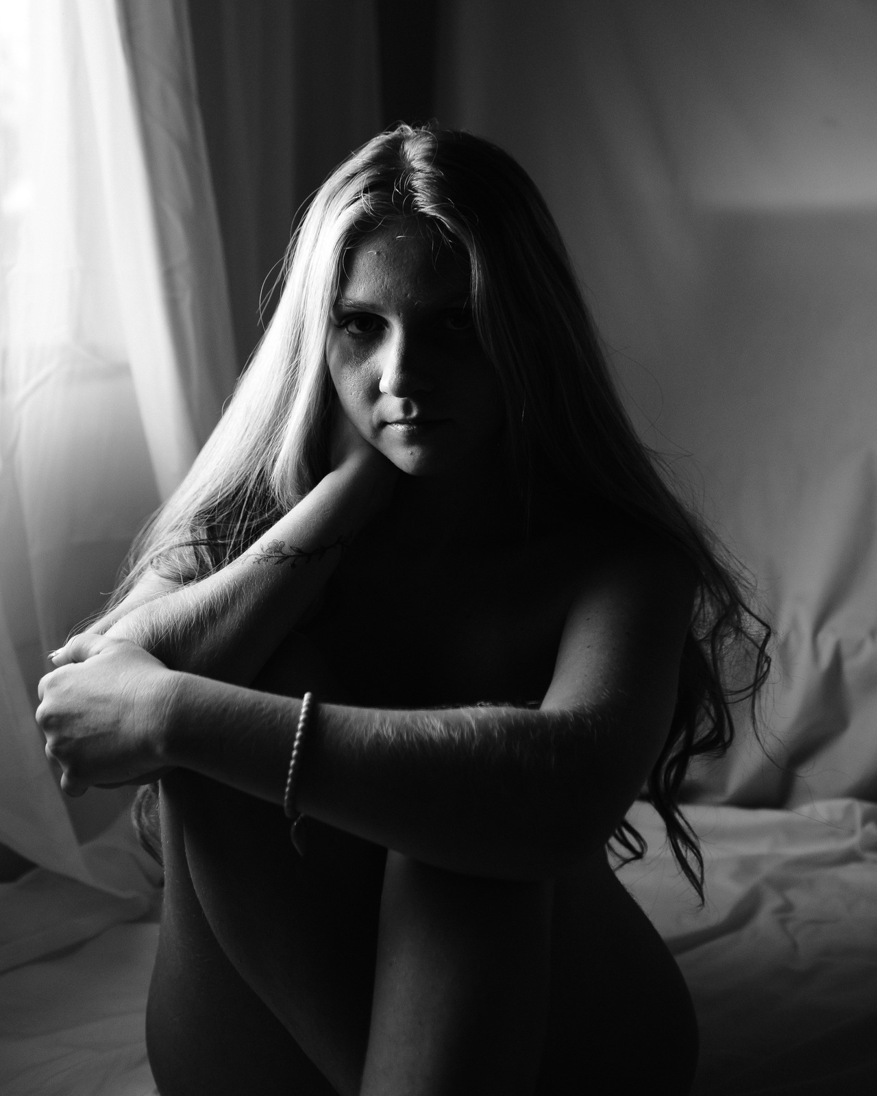 Acreditando você ou não, essa foto só aconteceu no final do ensaio, quando a modelo já estava completamente vulnerável (no melhor sentido da palavra). Ali existia confiança, motivação, arte, uma conexão real entre modelo e fotógrafo.